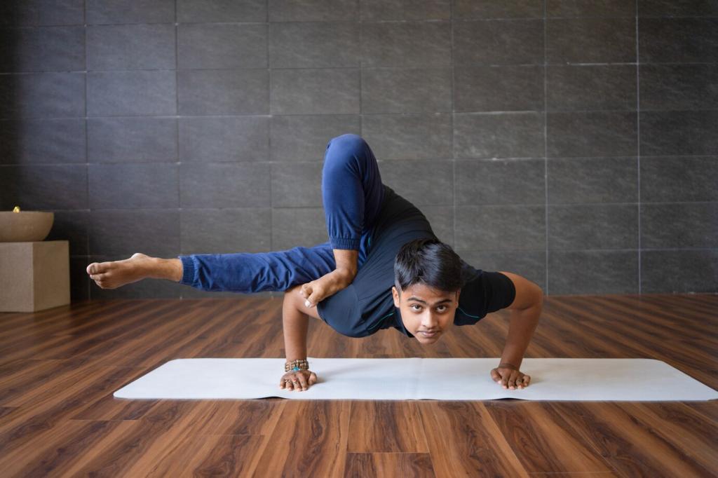 Stand tall, place one foot to the ankle or calf, and avoid the knee. Press foot and leg together, lift through the crown, and breathe softly. Gaze at a steady point. Beginners quickly learn that balance grows from calm attention, a lesson that enriches all basic asanas and daily focus.